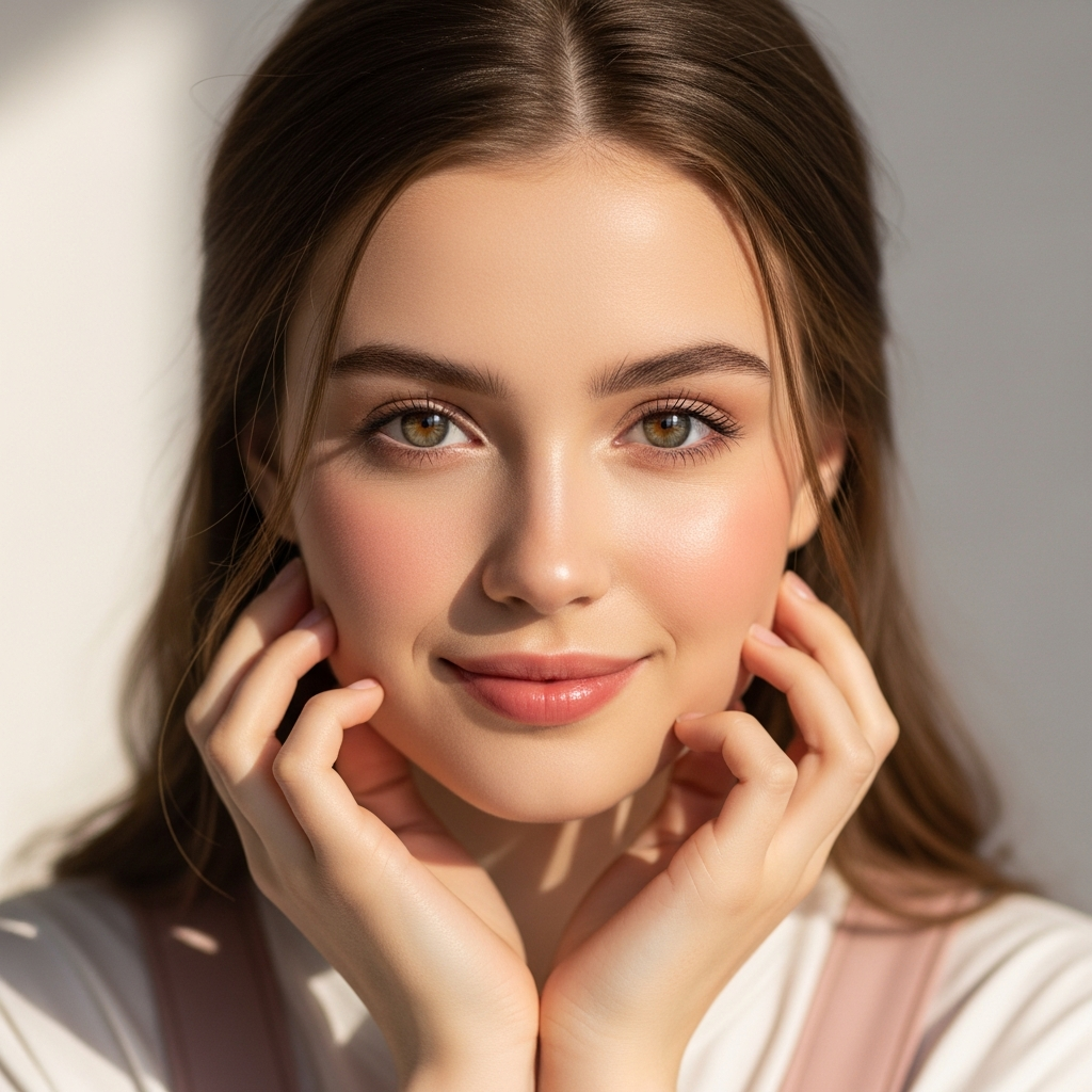 a cute and extremely beautiful young woman (under18), youthful and innocent charm, soft glowing skin, delicate facial features, big expressive eyes, gentle smile, natural rosy cheeks, smooth clear complexion. elegant youthful hairstyle, soft natural colors, cozy aesthetic, warm daylight, calm and wholesome mood. wearing simple stylish casual outfit, pastel tones, clean background. ultra-realistic portrait photography, soft cinematic lighting, shallow depth of field, 85mm lens look, natural beauty, minimal makeup, professional studio quality, photorealistic, high detail, aesthetic composition,